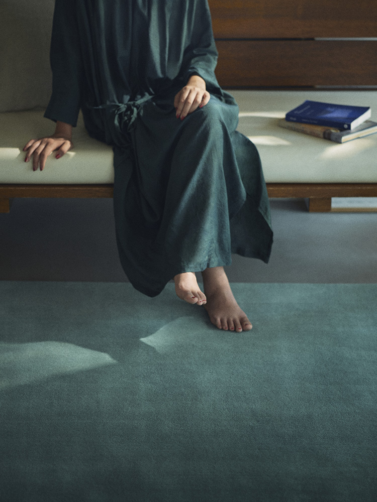 日本古来の無地の美しさを表現したじゅうたんコレクション。穏やかな気配の青みを帯びたグレーは、幅広い素材やカラーとスタイリングしやすく、空間をコンテンポラリーにまとめます。