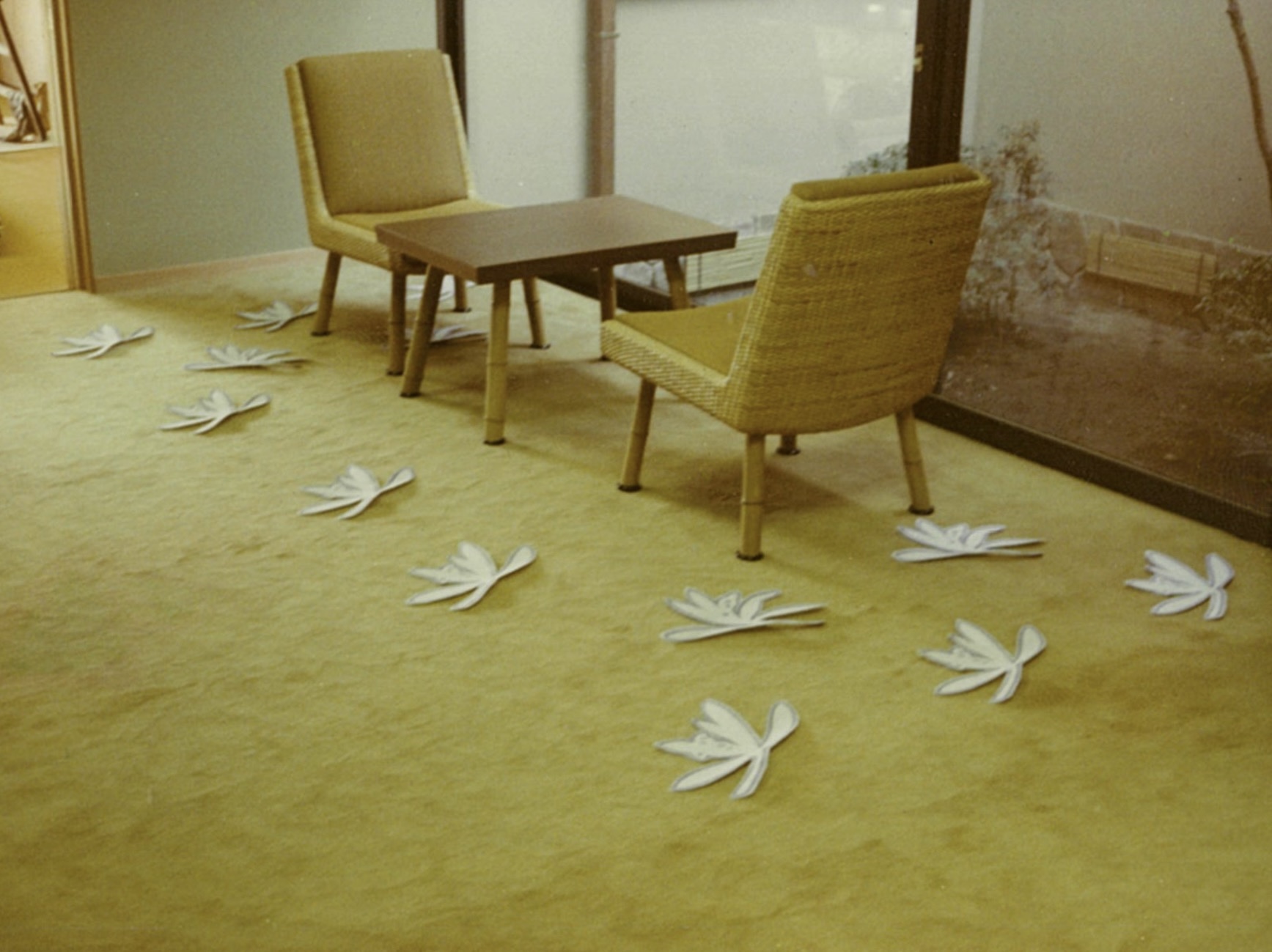 These photographs capture the installation and carving (sculptural finishing) of carpets at the “Gokidani Residence,” designed by Japanese architect Isoya Yoshida in 1971.
